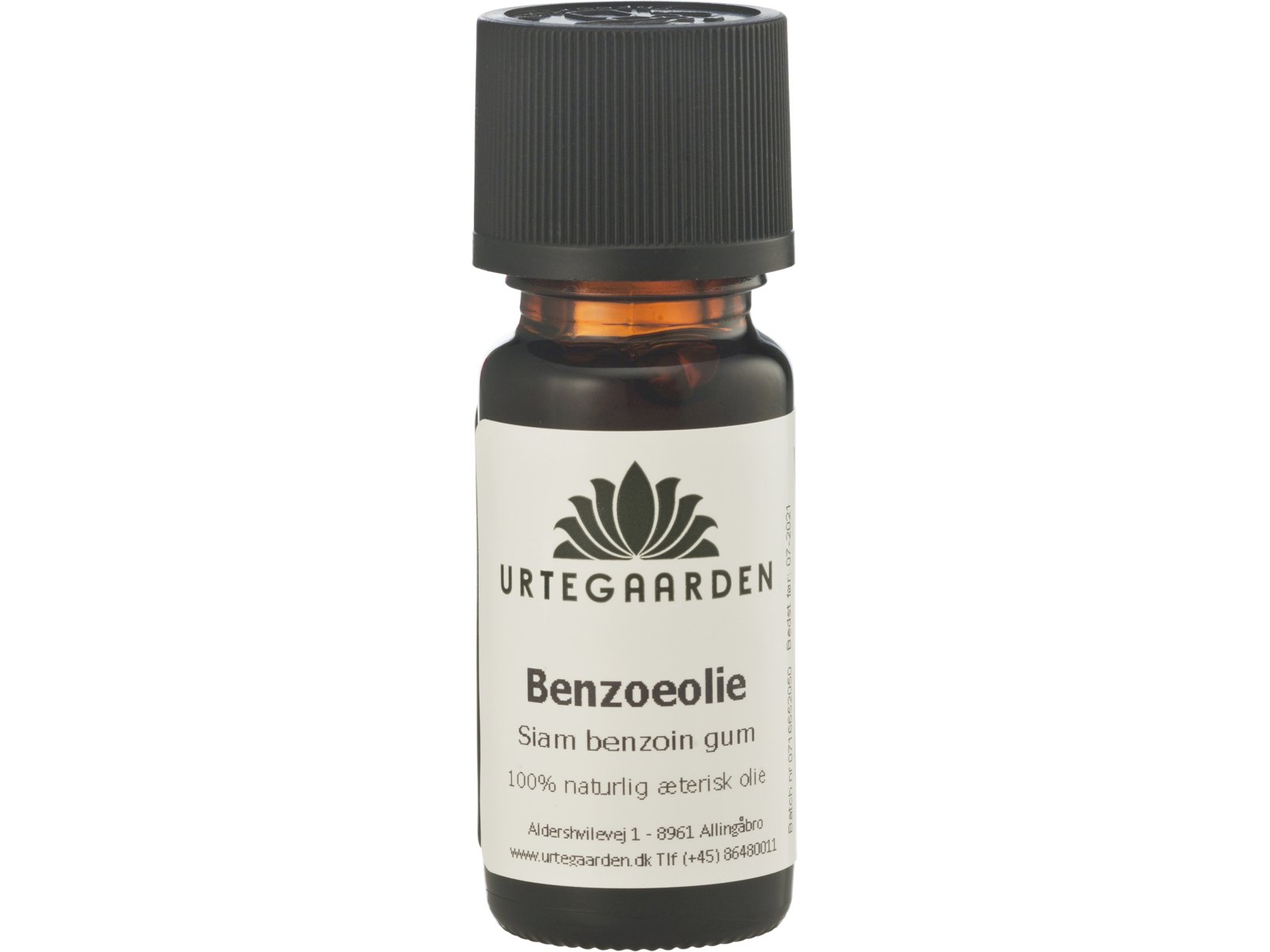 Benzoeolie fra Urtegarden er en 100% naturlig og ren æterisk olie uden tilsætningsstoffer. NB! Benzoeolie er meget tyktflydende, det er ofte nemmest at bruge en lille spatel at tage den op fra flasken med.