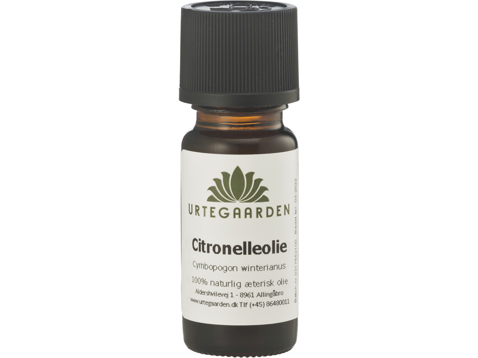 Citronelleolie fra Urtegarden er en 100% naturlig og ren æterisk olie uden tilsætningsstoffer. Indeholder et stof, der er kendt for sin langtidsvirkende afskrækkende effekt på bidende insekter.