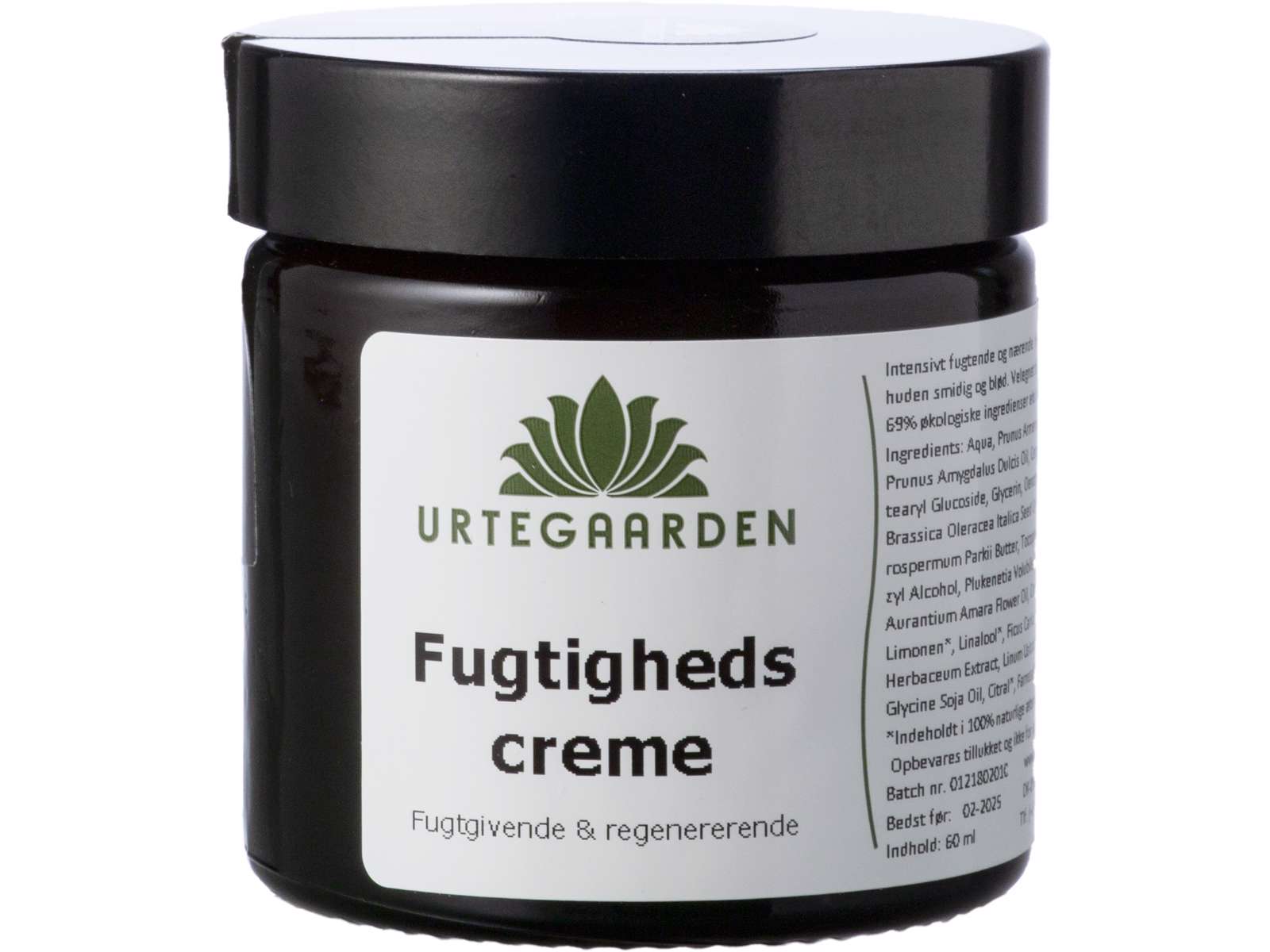 Fugtighedscreme fra Urtegaarden er en ansigtscreme med en let konsistens, der ikke fedter huden. Cremen indeholder en kombination af forskellige fugtgivende planteekstrakter med både dokumenteret fugtgivende her og nu effekt samt effekt op til 48 timer. efter brug. Resultatet er en gennemfugtet hud, hvor hudens naturlige fugtbalance genskabes og strukturen forbedres så huden bliver mere ensartet at se på. Fugtighedscreme er rig på essentielle fedtsyrer, fra økologiske vegetabilske olier, der nærer og som er nødvendige for at huden kan fungere optimalt. Indholdet af allantoin stimulerer cellefornyelsen og giver huden en naturlig glød. Sacha inchi olie og den naturlige antioxidant E-vitamin, bekæmper skader fra frie radikaler som fx fine linjer og i samspil med kæmpenatlysolie beskyttes og genopbygges huden samt smidigheden øges. Fugtighedscreme har en mild og opfriskende blomsterduft med citrusnoter komponeret af cellefornyende æterisk neroliolie og stimulerende citronolie.