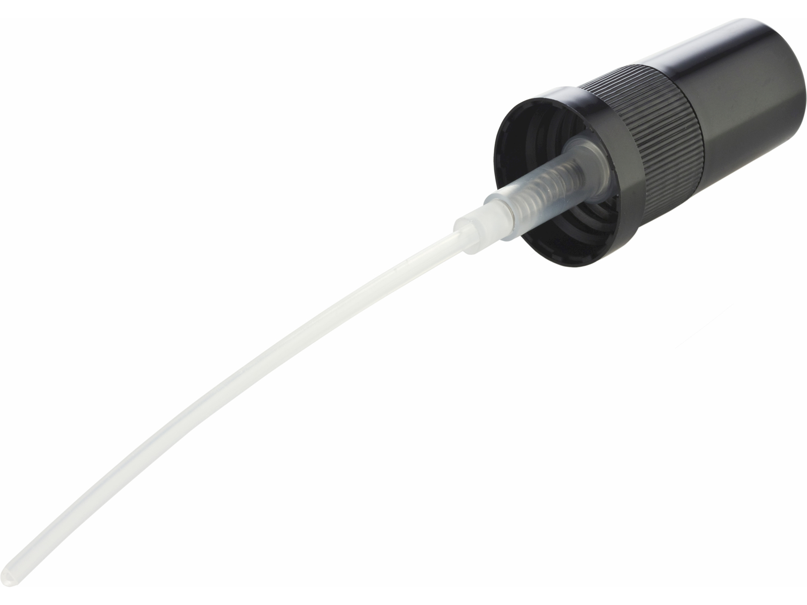 Spray doseringspumpe i plast med hætte. Bruges til vandige produkter der skal sprayes på, f.eks ansigtsmist, rumspray, ansigtstonic og rengøringsmidler. Spraypumpen er ikke velegnet til olier eller creme/lotion. Brug i stedet Urtegaarden lotionpumpe.