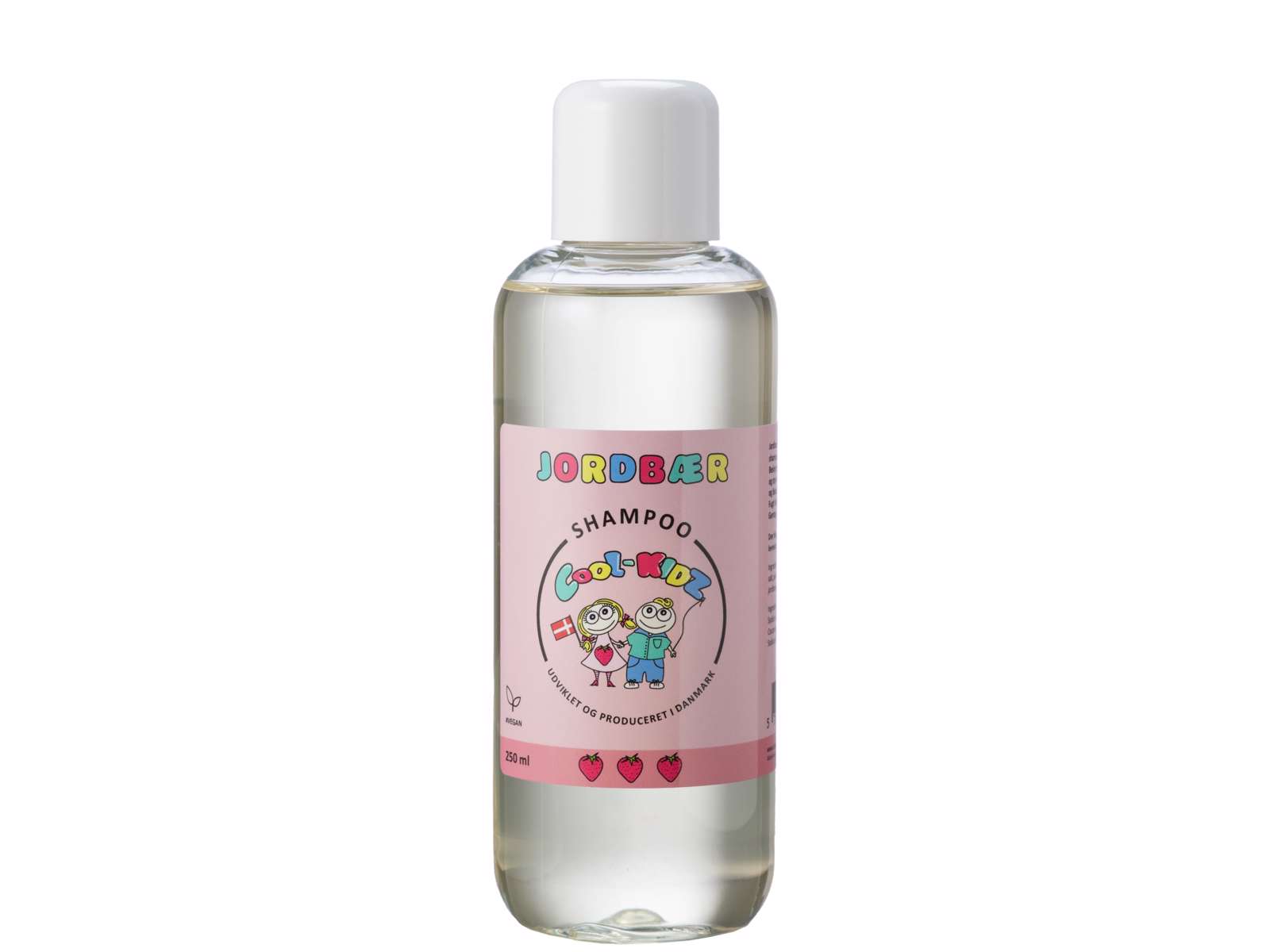 Cool Kidz Jordbærshampoo er en skånsomt rensende shampoo baseret på vegetabilske sæbestoffer, der ikke svier i øjnene. Shampooen indeholder panthenol, der beskytter og reparerer hårstrået samt fugtbevarende glycerin, der er med til at holde håret blødt.