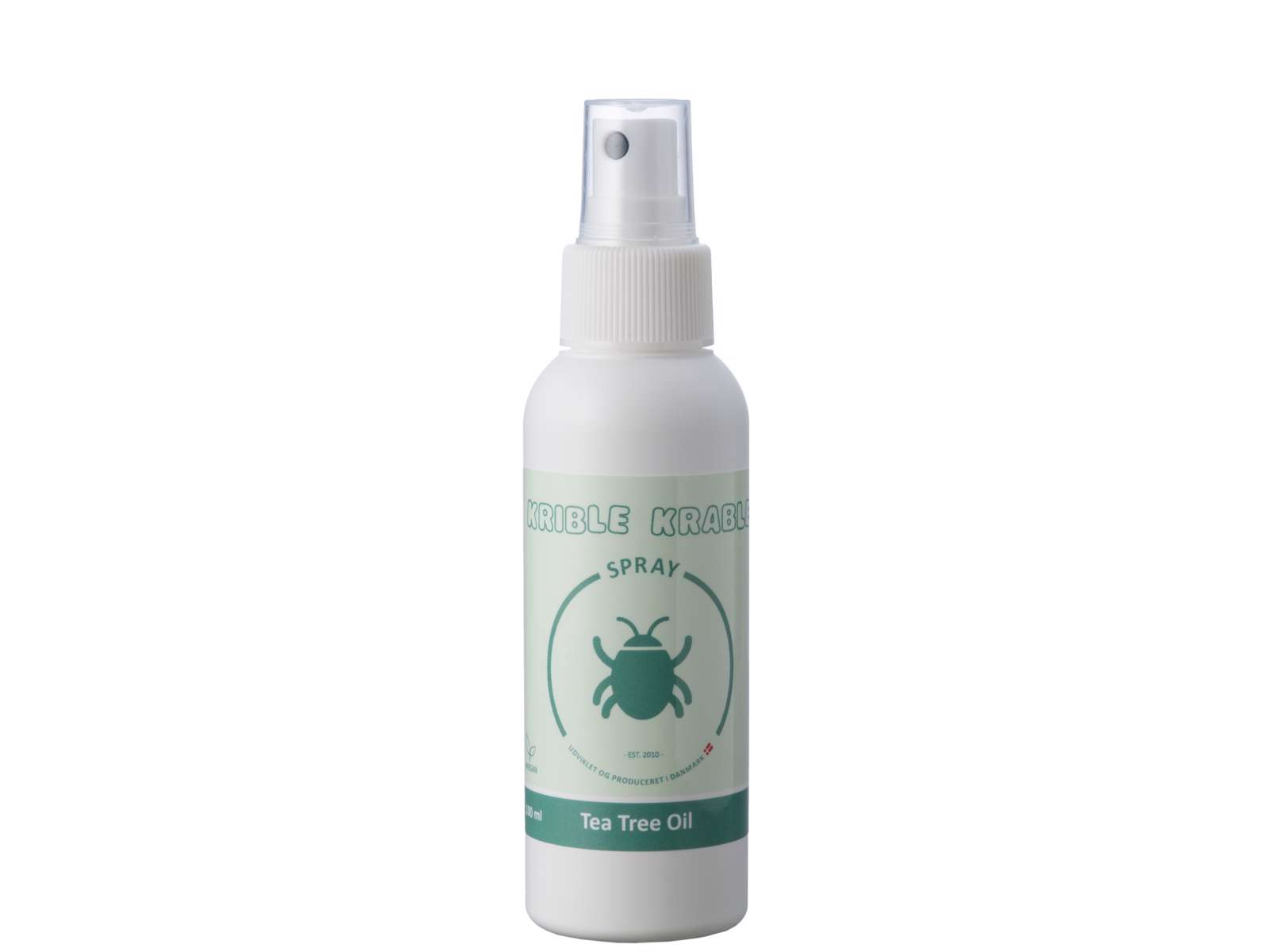 Krible Krable Spray er 100% dansk produceret, og indeholder en nøje doseret portion Tea Tree Oil, som har en forebyggende virkning på ubudne krible-krable gæster i håret.