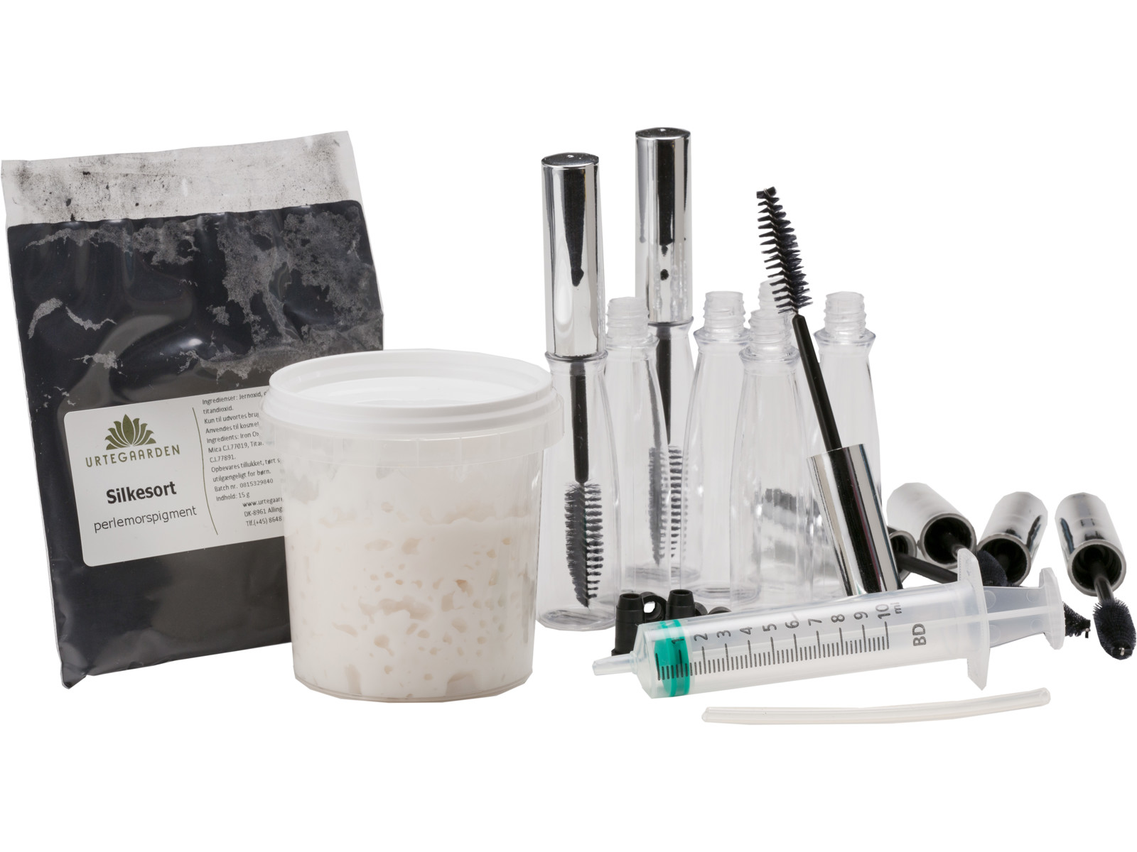 Kom nemt i gang med at lave lækre hjemmelavet mascara. Mascarasæt indeholder råvarer og emballage til at lave 7 stk. sorte mascaraer.