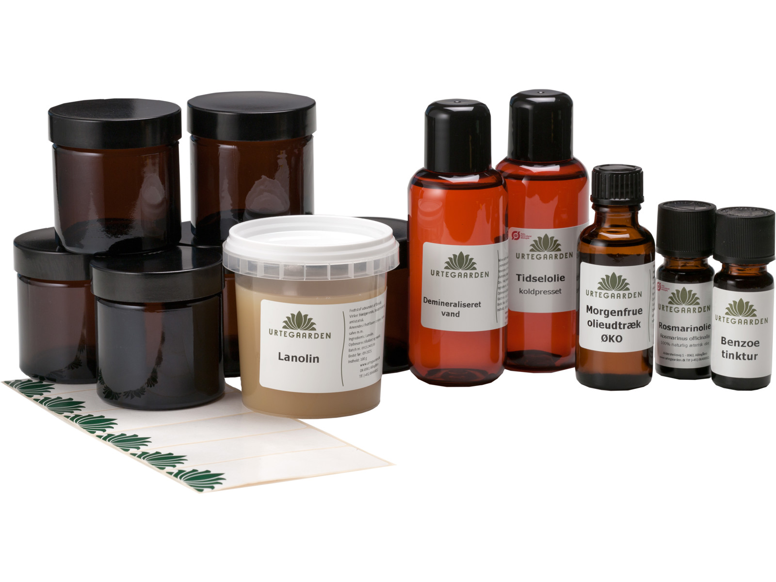 Kom nemt igang med at lave salve. Morgenfruesalvesæt indeholder råvarer og emballage til at lave 6 stk. plejende salve til tør og ru hud á 50 ml.