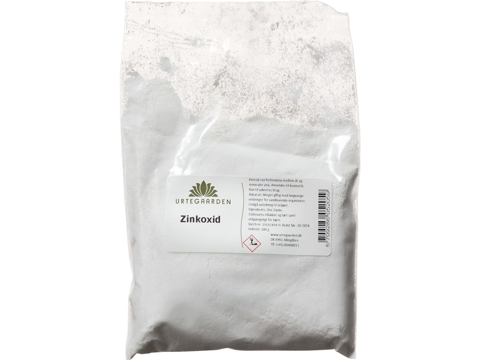 Zinkoxid (Zn0) er en uorganisk forbindelse mellem mineralet zink og luftarten ilt. Medicinsk kvalitet. Renhed min. 99%. Ikke-nano.