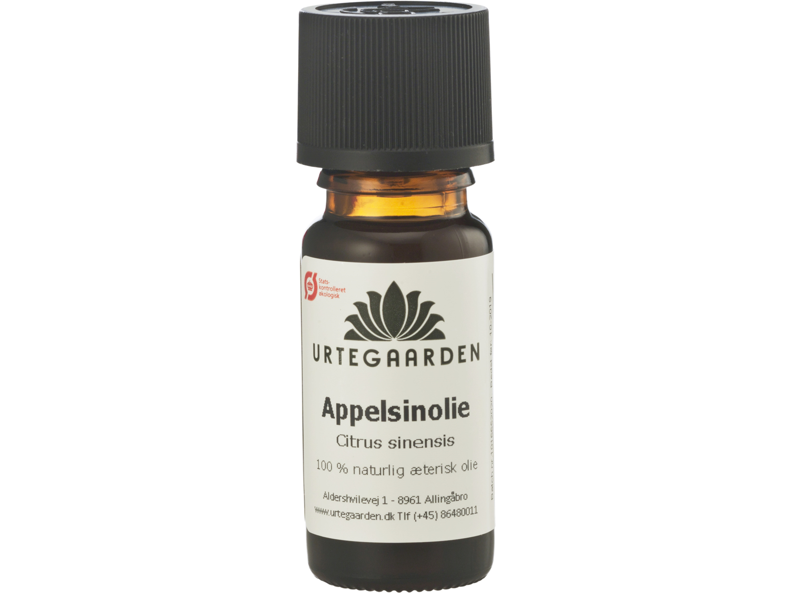 Appelsinolie fra Urtegarden er en 100% naturlig og ren æterisk olie uden tilsætningsstoffer.