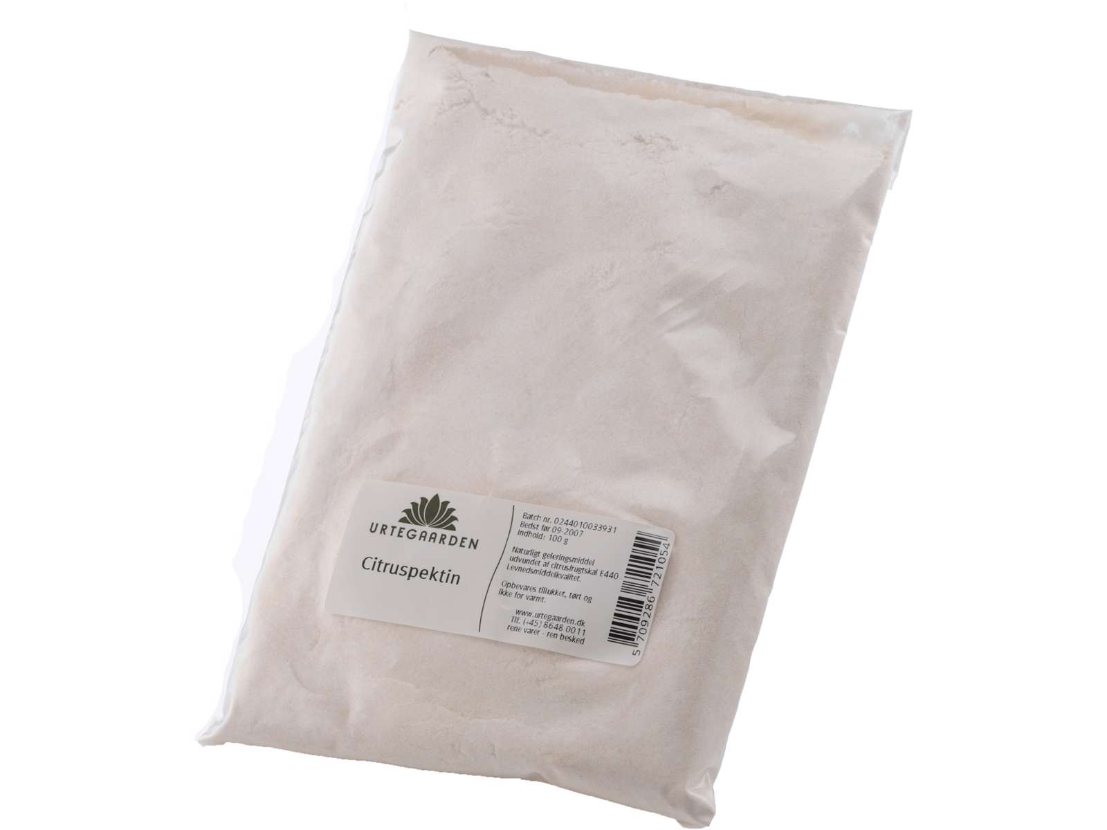 Citruspektin er et naturligt og vegetabilsk geleringsmiddel. Fremstillet af citron- og/eller appelsinskaller og standardiseret med ca. 20% maltodextrin.