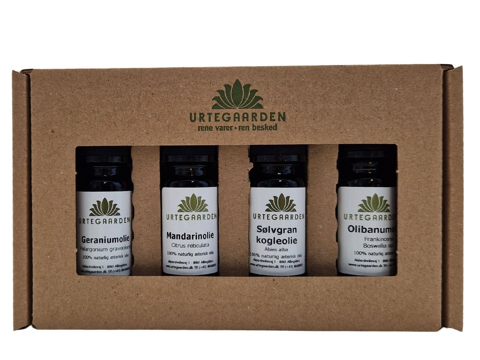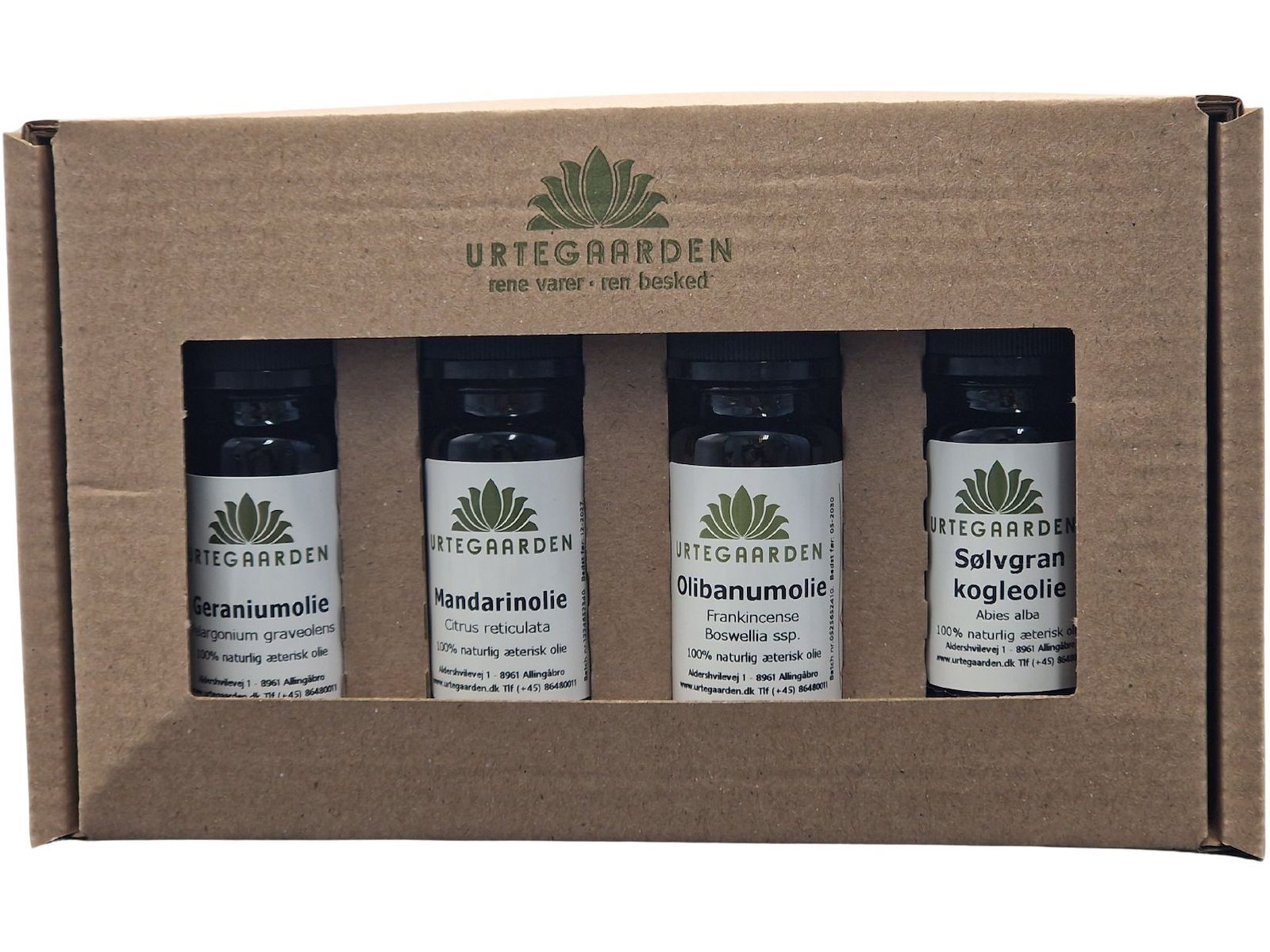 Du kan anvende olierne enkeltvis efter behov eller du kan bruge dem i kombination til et samlet gusforløb, hvor du starter med at åbne sanserne for at ende med dyb ro og balance. Begynd din gus med Mandarinolie, som åbner sanserne og skaber en let, opløftende stemning. Fortsæt med Geraniumolie, der giver balance og afstresser. Gå derefter over i Olibanumolie, som skaber fordybelse og mental klarhed samt giver indre ro. Afslut forløbet med Sølvgrankogleolie, der giver en varm, beroligende og stabil afslutning på gusen.