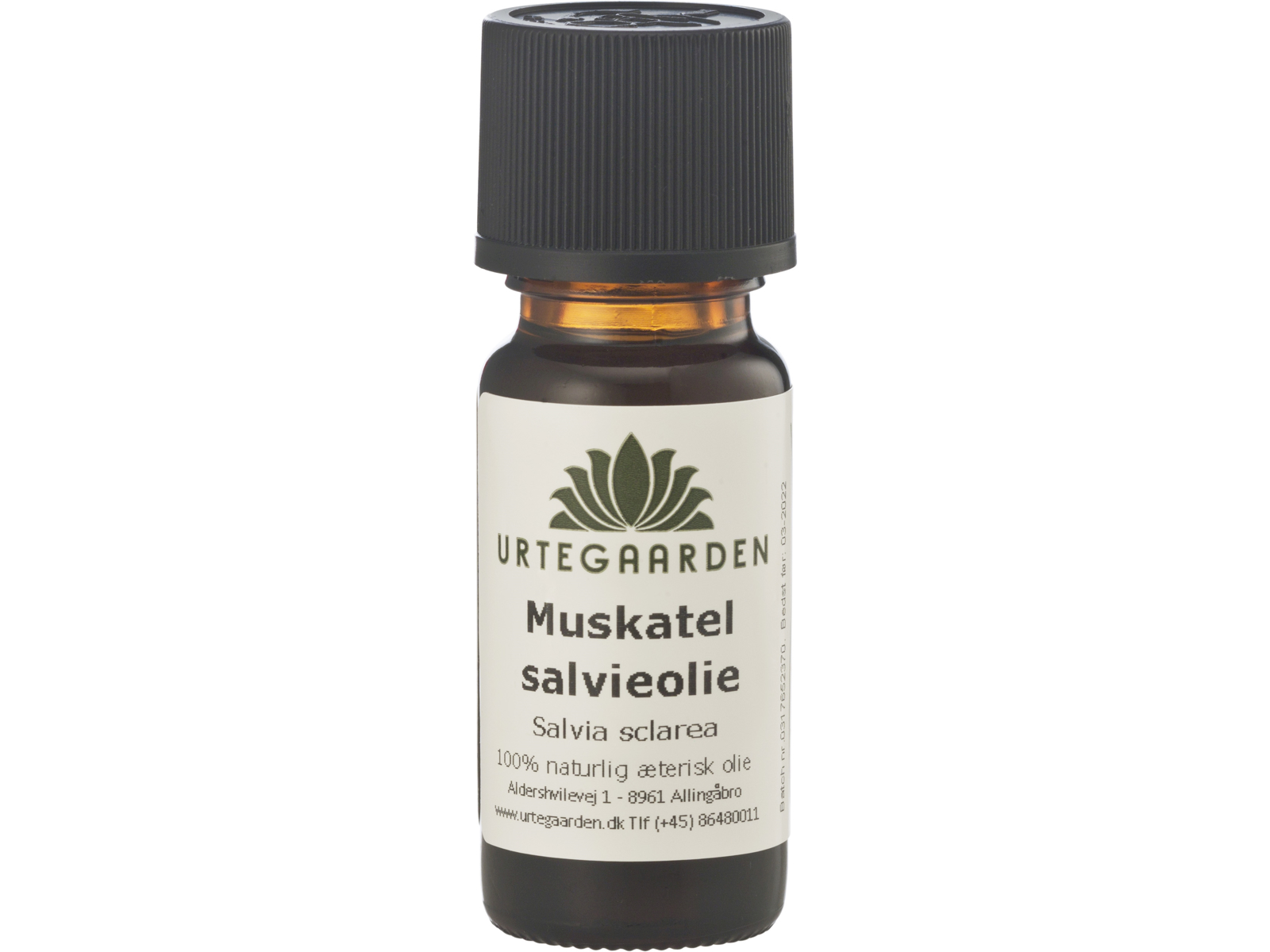 Muskatelsalvieolie fra Urtegarden er en 100% naturlig og ren æterisk olie uden tilsætningsstoffer.